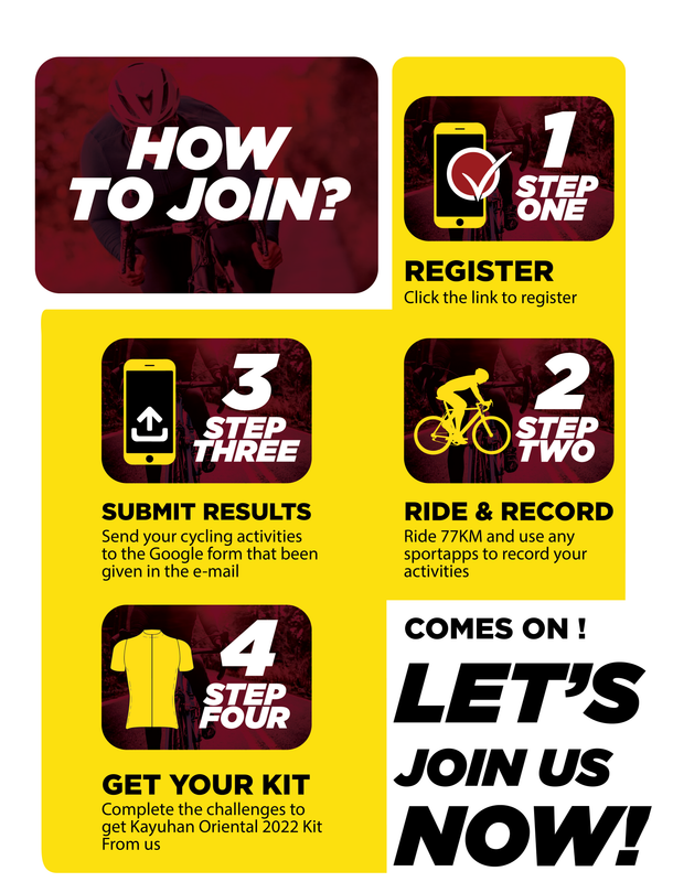 Dengan jarak kayuhan 77KM ini akan menjadi bukti bahawa Bikeshakers yang menyertai ORIENTAL VIRTUAL RIDE 2022 ini lasak dan kuat seperti sang jalur iaitu SANG RIMAU, dan anda mempunyai selama sebulan untuk menghabiskan jarak kayuhan ini!