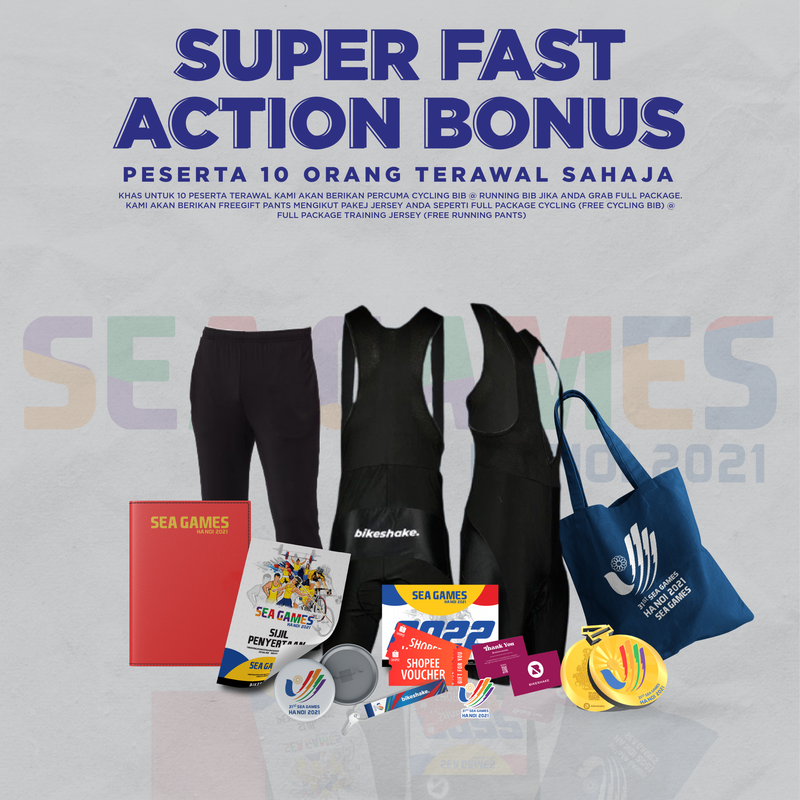 Dapatkan Full Package dengan harga Early Bird serendah RM55 sahaja, anda akan memperoleh 10 Item Special Sukan Sea Edition.
